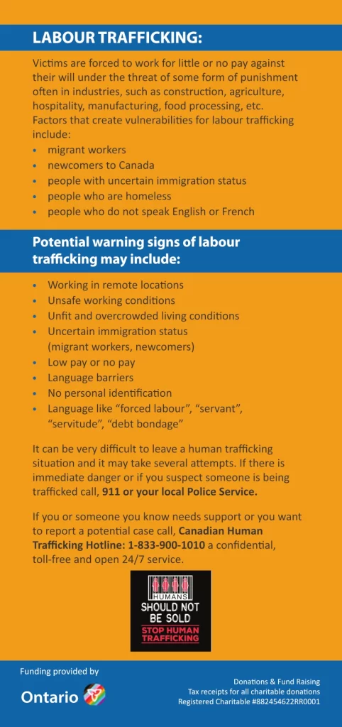 For more information please visit: https://www.ontario.ca/page/human-trafficking